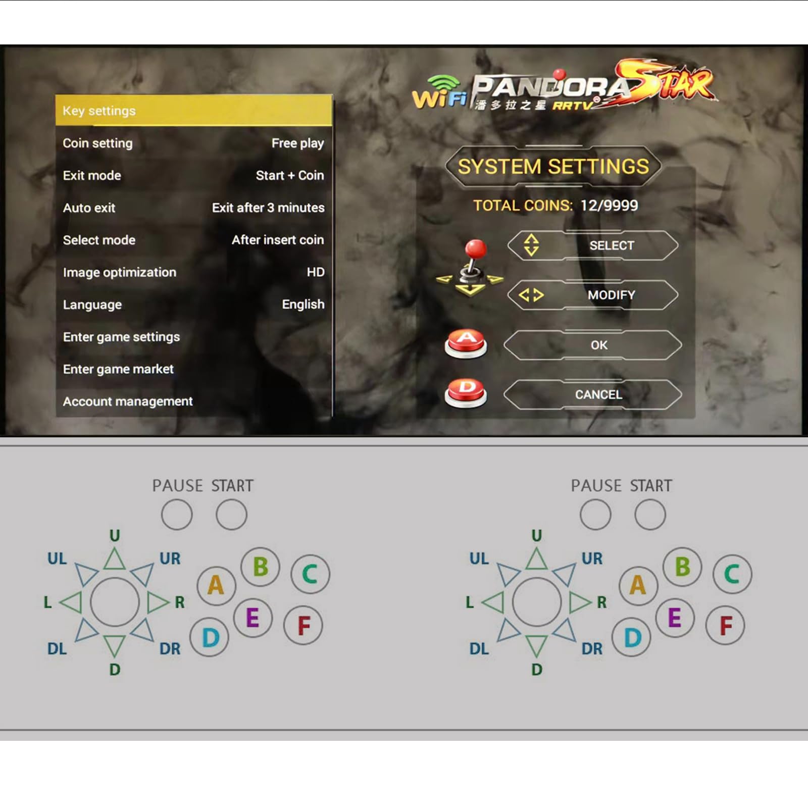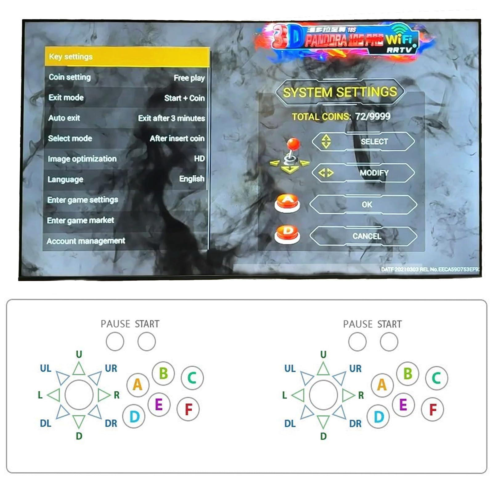 10000 in 1 Arcade Game Console Pandoras 18S WiFi Function Game Machine for PC & Projector & TV, 2-4 Players, 1280X720, 3D Games, Search/Hide/Save/Load/Pause Games, Favorite List