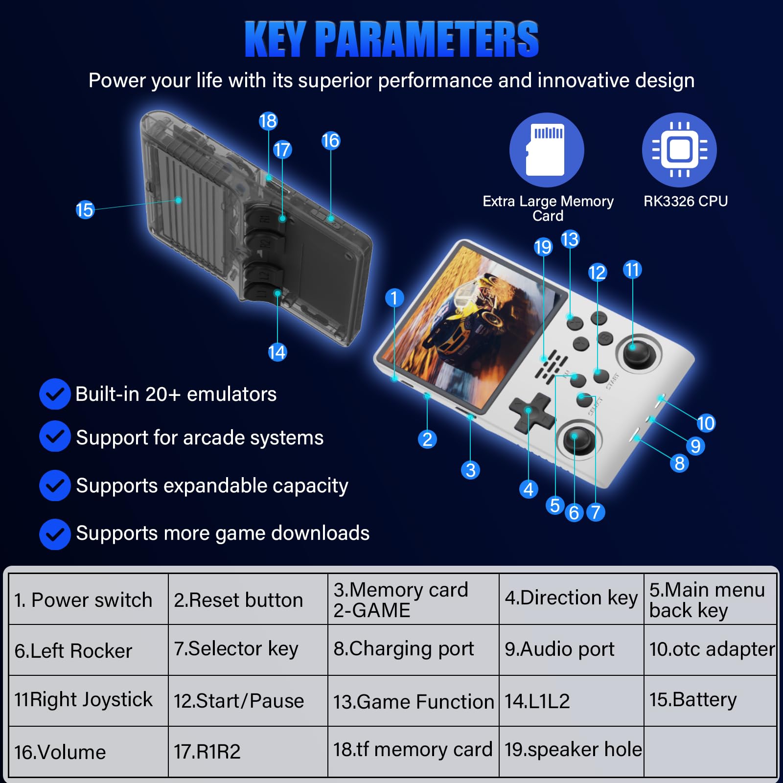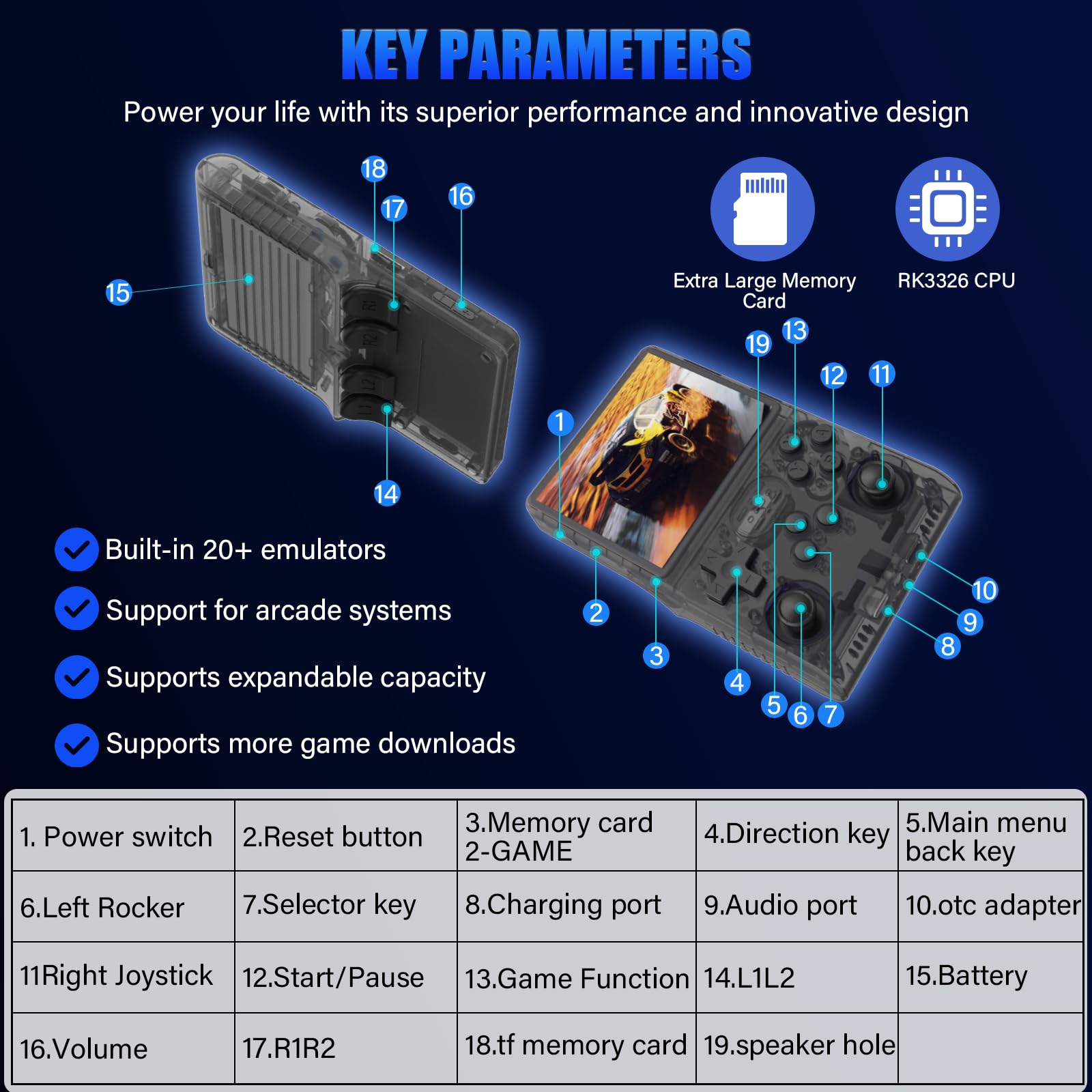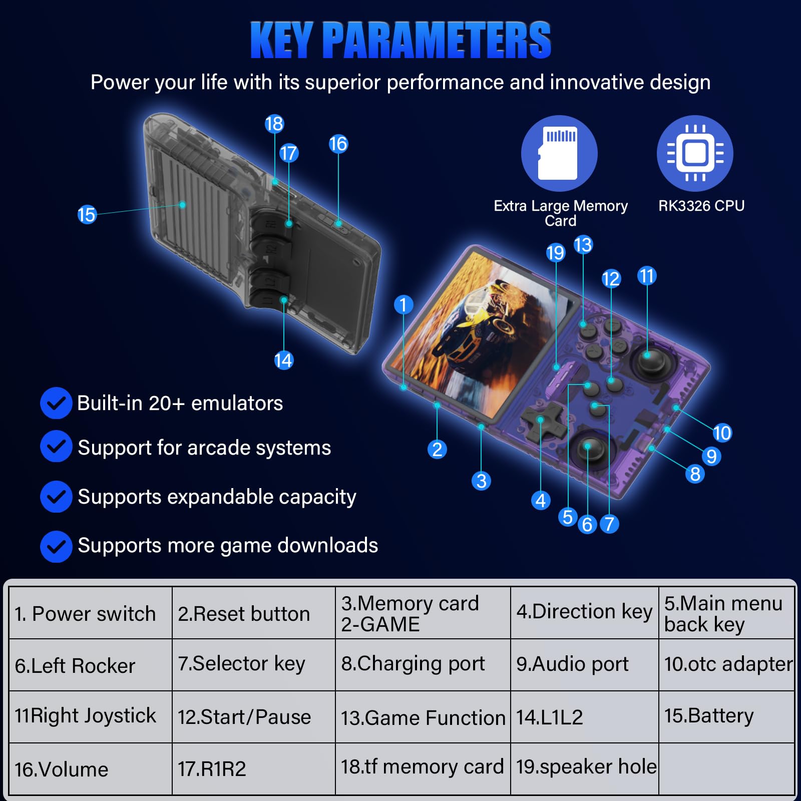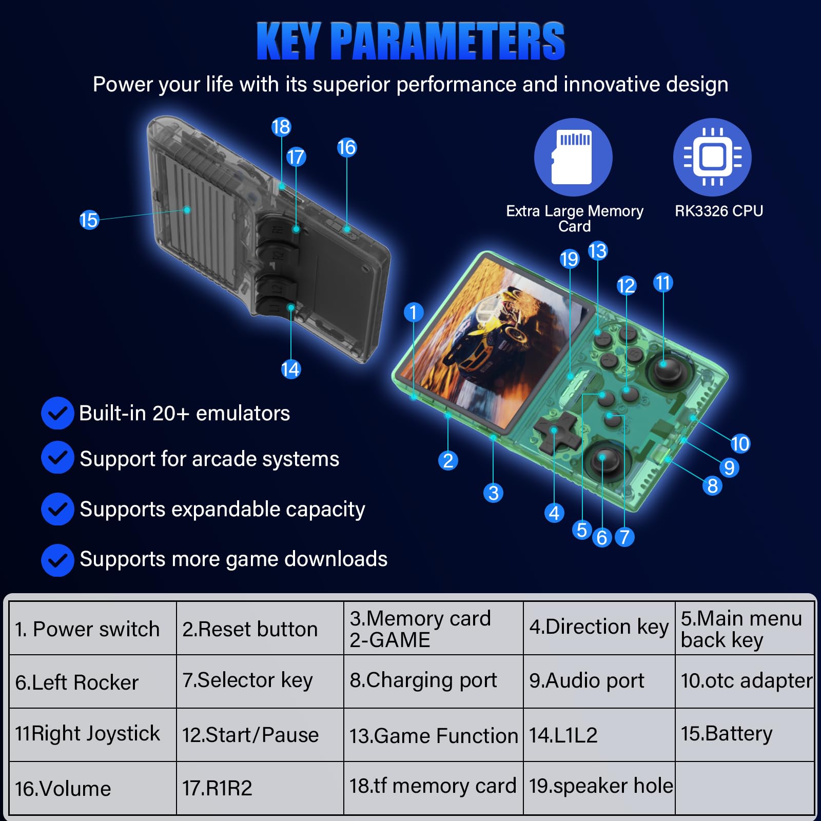 - 【256G Storage & 30000 Pre-loaded Games】-This handheld game console comes pre-loaded with 30,000 games and supports more than 20 emulators. With its 256G storage capacity, you can enjoy a vast library of games, and there's an option to insert an additional TF card to expand your game collection even further.