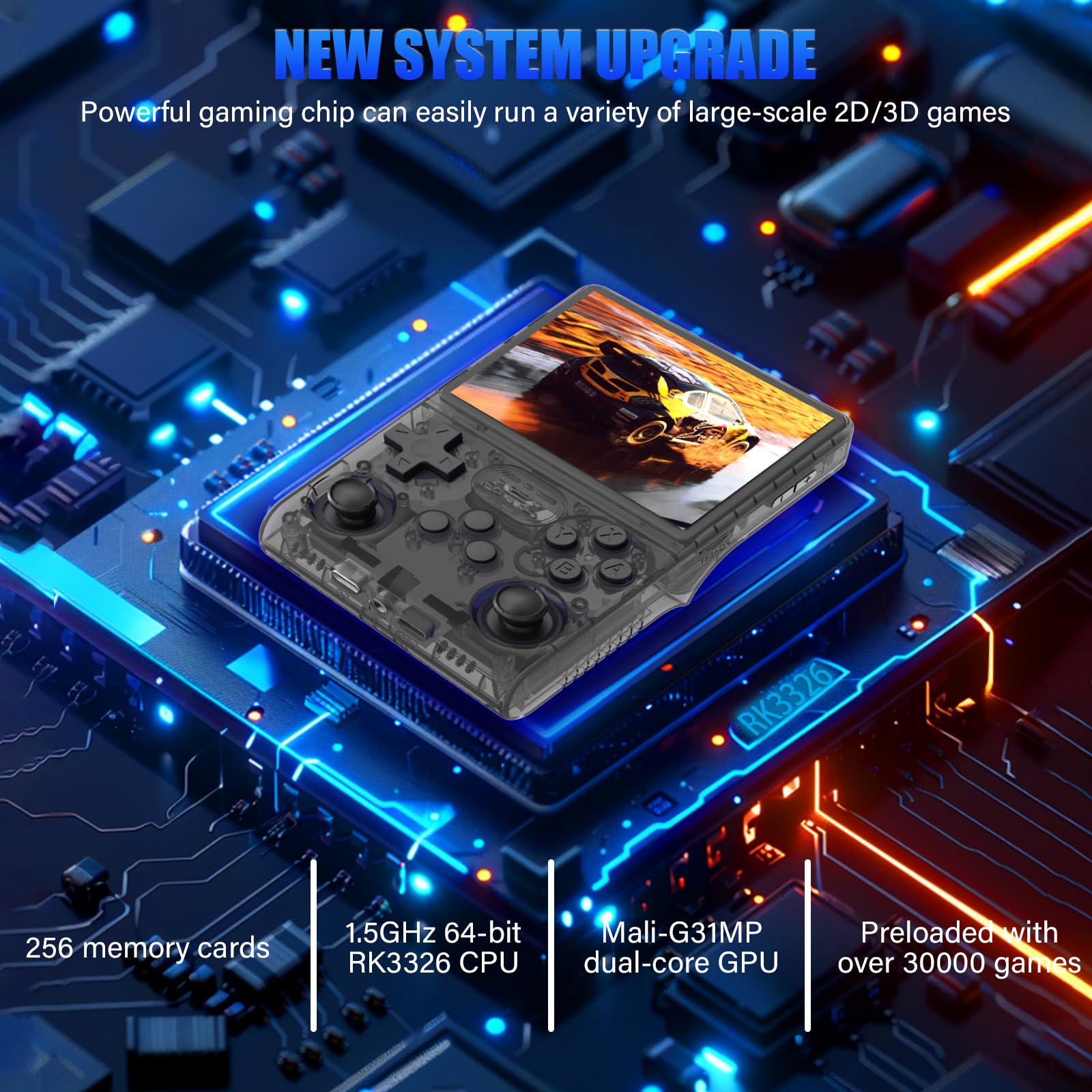 - 【New Retro Game System】-The R40S Pro is a high-performance retro video game console, equipped with a 1.5GHz 64-bit RK3326 CPU and a Mali-G31MP dual-core GPU. With 4GB*2 RAM DDR3L, it offers a smooth and responsive gaming experience across a variety of emulators.