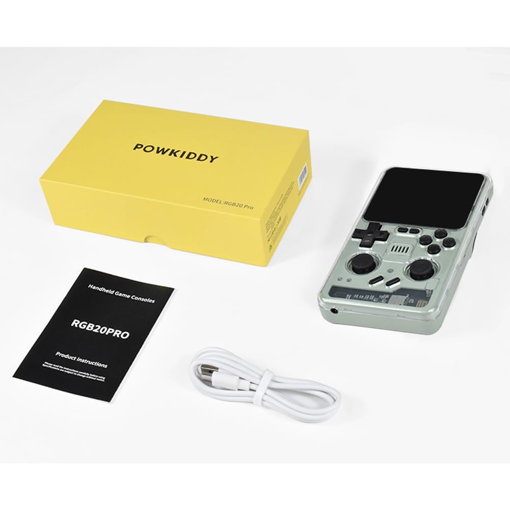 Powkiddy RGB20 Pro Handheld Retro Game Console, Vivid 3.2’’ IPS Screen, Powerful Quad-Core Processor, Dual TF Card Support, Long-Lasting 5000mAh Battery, Classic Gaming Experience (Green 128GB)
