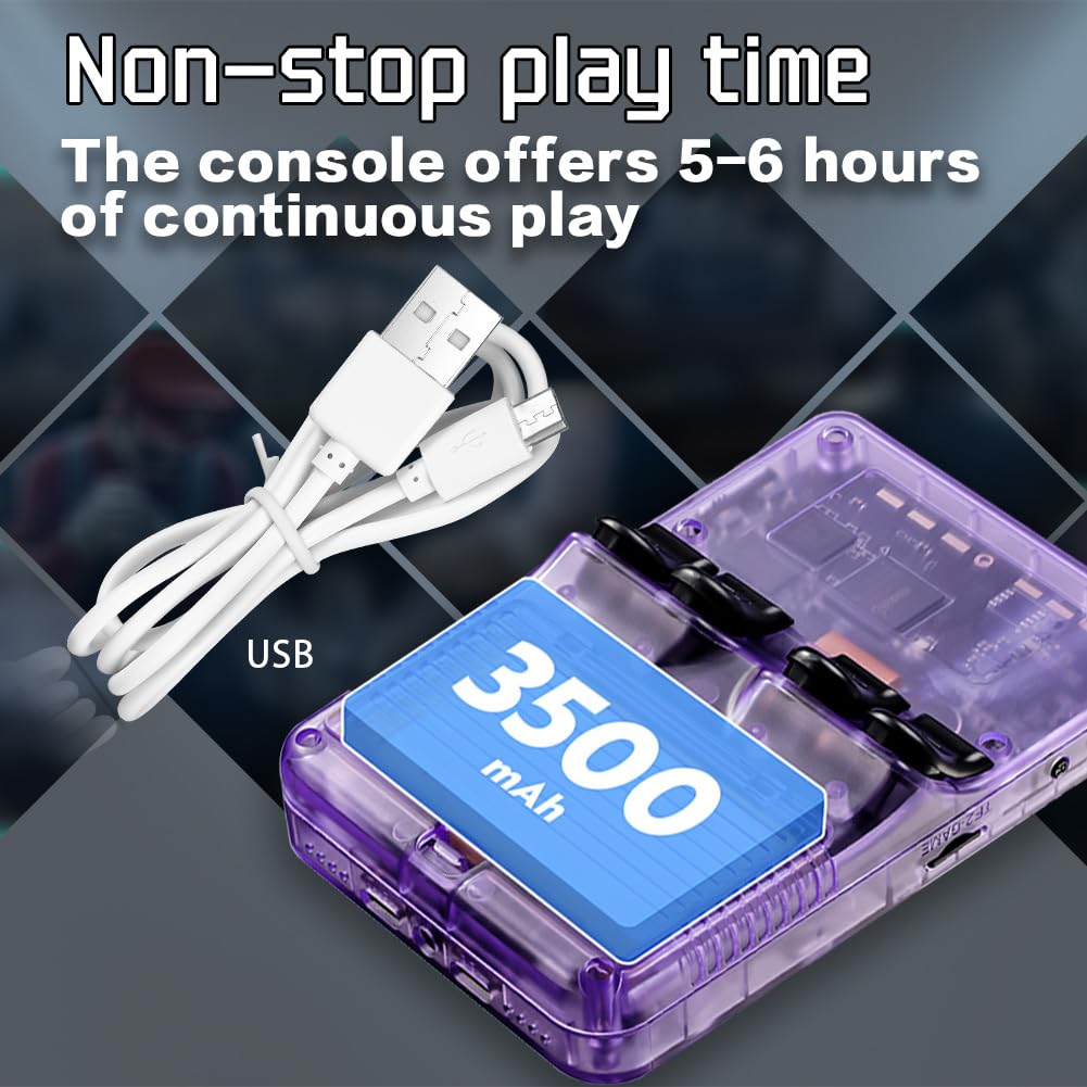 - 【Portability And Long Battery Life】 This Handheld Game Console Is Lightweight And Portable, Allowing You To Play Games Anytime And Anywhere. The Built-In Battery Provides Long-Lasting Battery Life, Retro Boy Game Console Provides 5-6 Hours Of Continuous Gameplay.